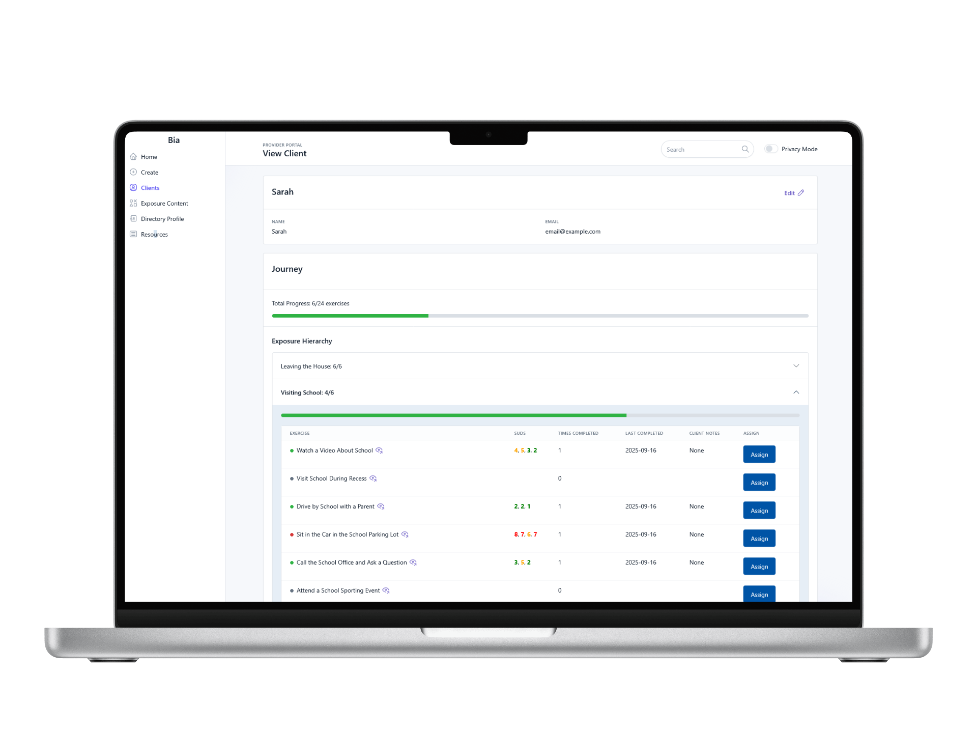 Nein. Bia ist ein personalisiertes, angeleitetes Instrument zum Erlernen und Üben der Exposition. Es kann mit oder ohne die Hilfe eines Therapeuten benutzt werden, aber Bia ersetzt nicht die Behandlung durch einen herkömmlichen Therapeuten.